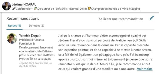 Champion du monde de Mind Mapping 2018, co-organisateur du Championnat du Monde de Mind Mapping et de Lecture Rapide, auteur et conférencier auprès de grandes organisations, Jérôme forme des praticiens en Soft Skills et accompagne les personnes à atteindre leurs objectifs.